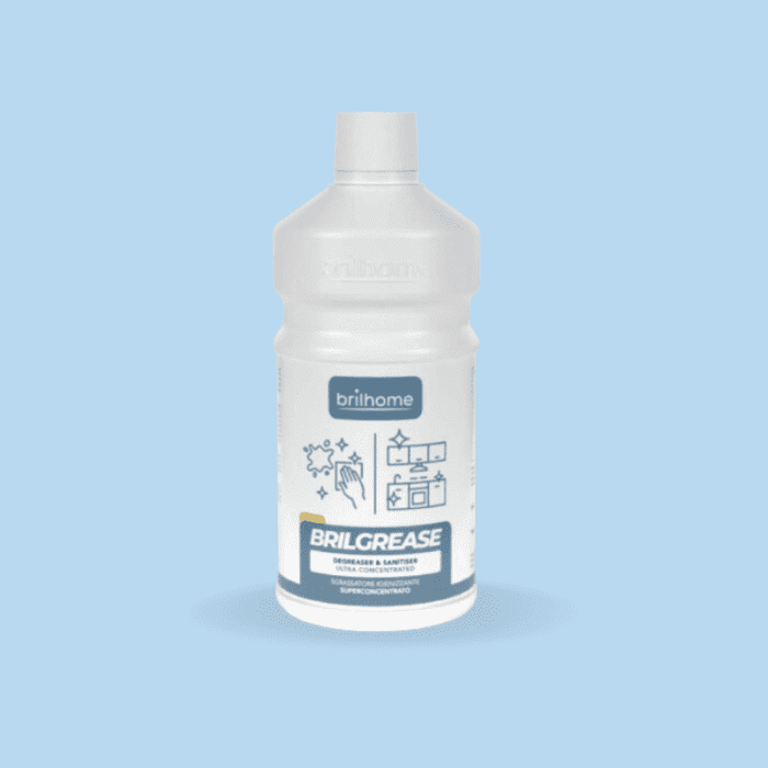 Brilgrease est un nettoyant concentré sans ammoniaque ni phosphate, idéal pour dégraisser et assainir toutes les surfaces lavables. Il élimine efficacement graisses, fumée, suie, huile, cires, et traces de caoutchouc, tout en étant adapté aux normes H.A.C.C.P.